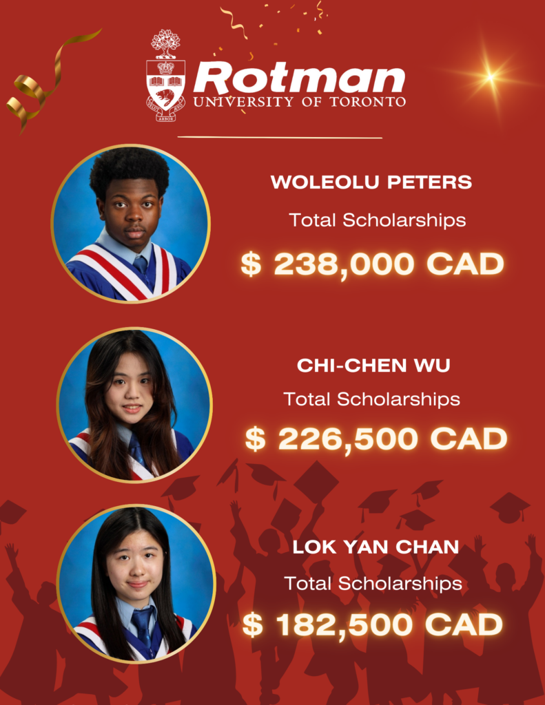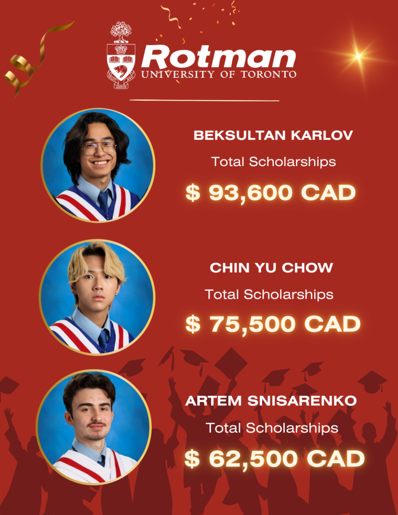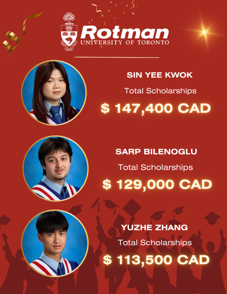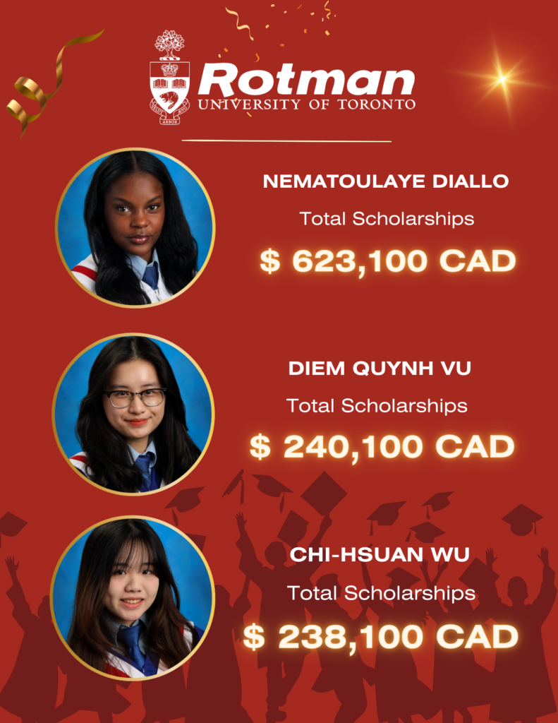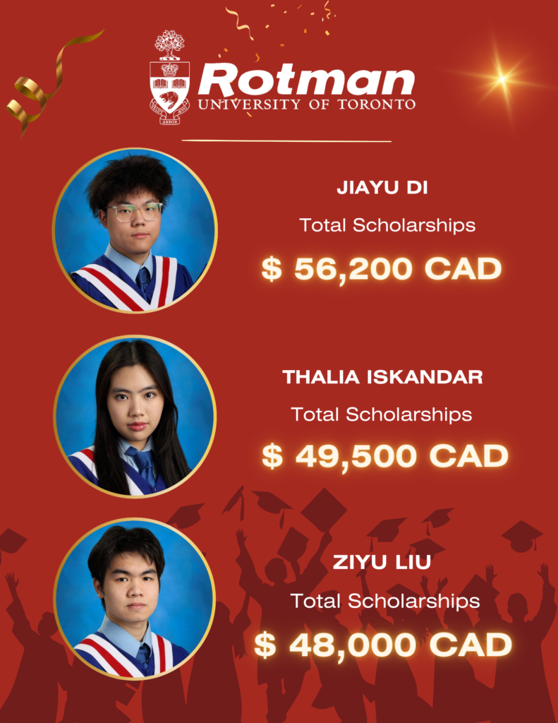 We’re thrilled to announce that 27 of our Class of 2024 graduates have been admitted to the University of Toronto’s Rotman School of Business – one of Canada’s finest! Congratulations to these bright minds on their incredible achievements!