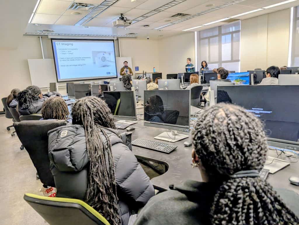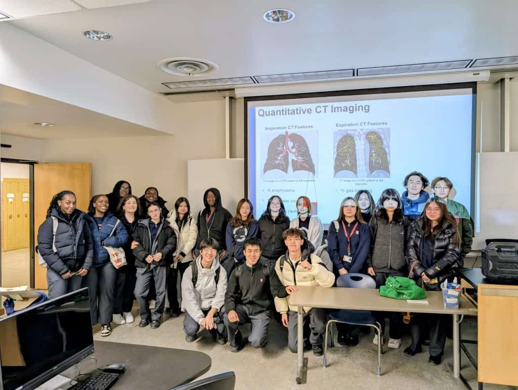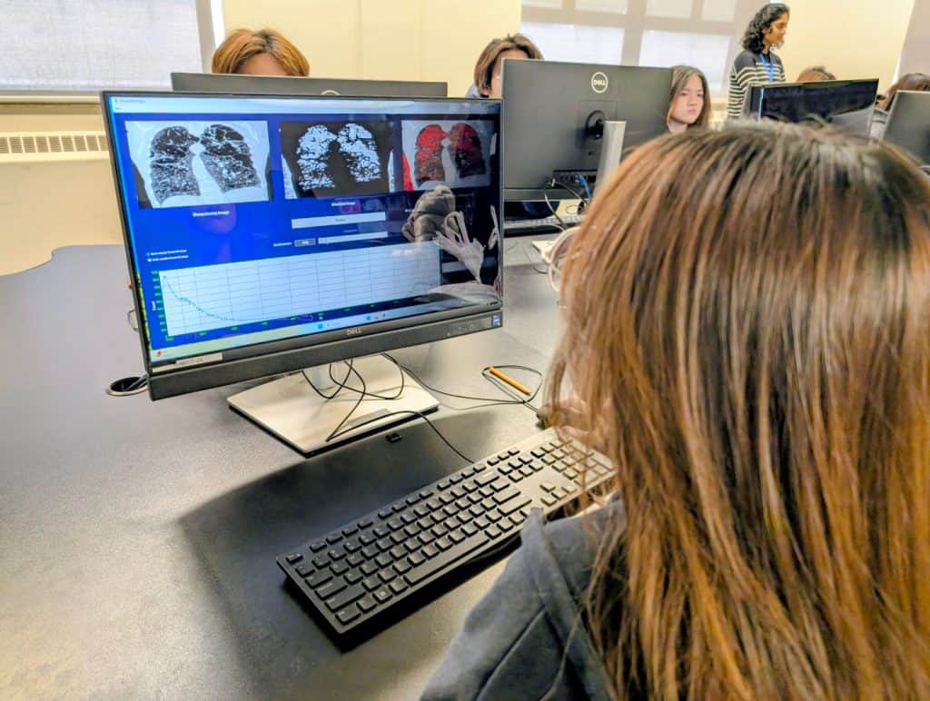 During this intensive session, students analyzed complex patient cases to diagnose lung disease, utilizing advanced computer modeling to interpret CT scans and calculate the physical extent of lung damage. This high-level simulation provided a unique opportunity to apply biological concepts to critical medical technology and real-world diagnostics.