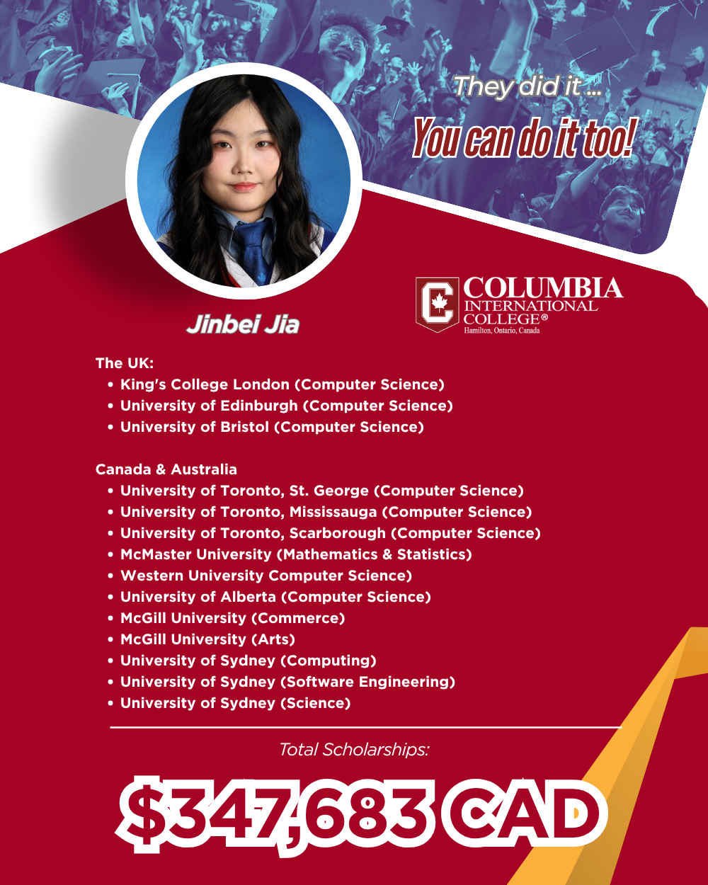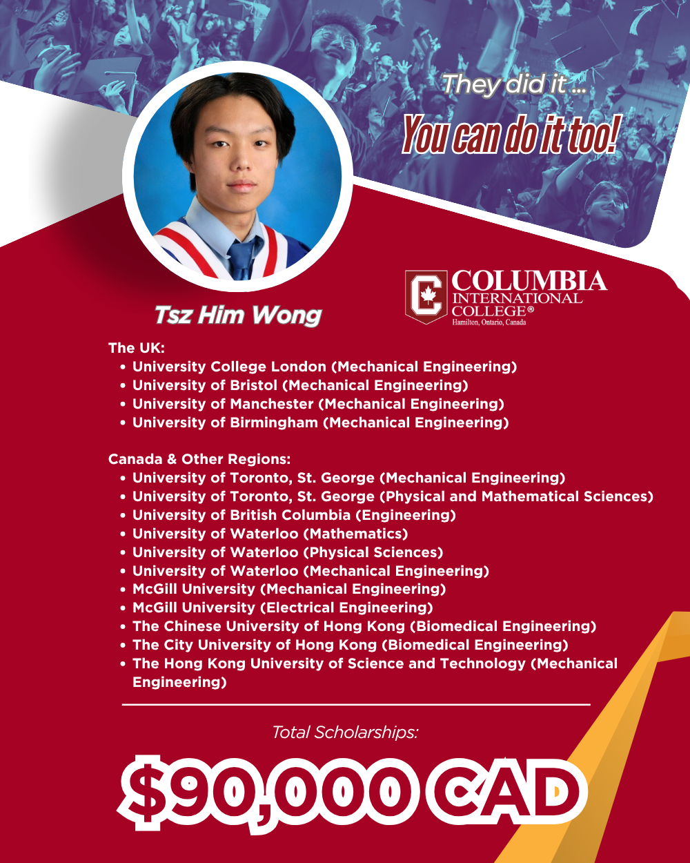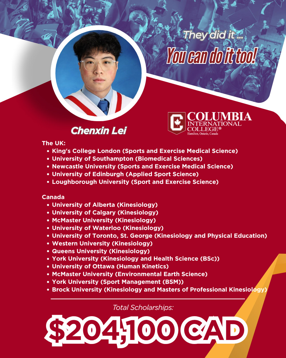 This milestone once again demonstrates the exceptional competitiveness of CIC students on the global higher education stage.