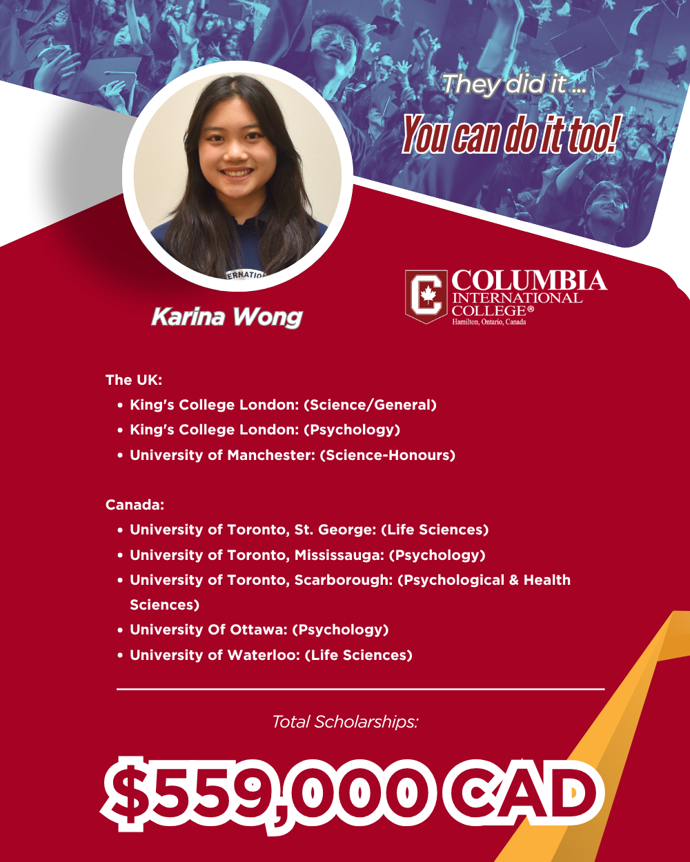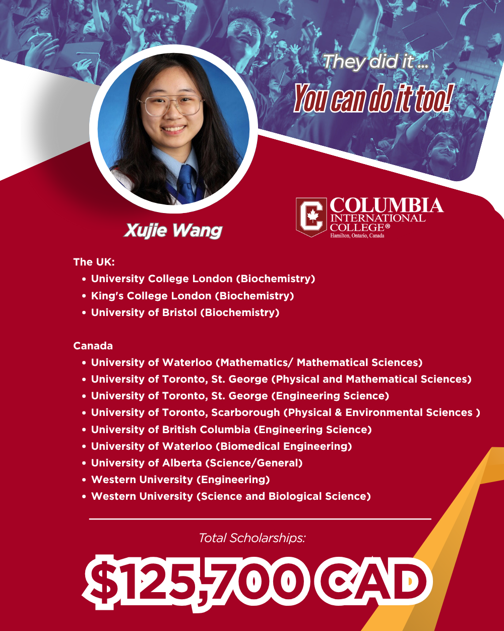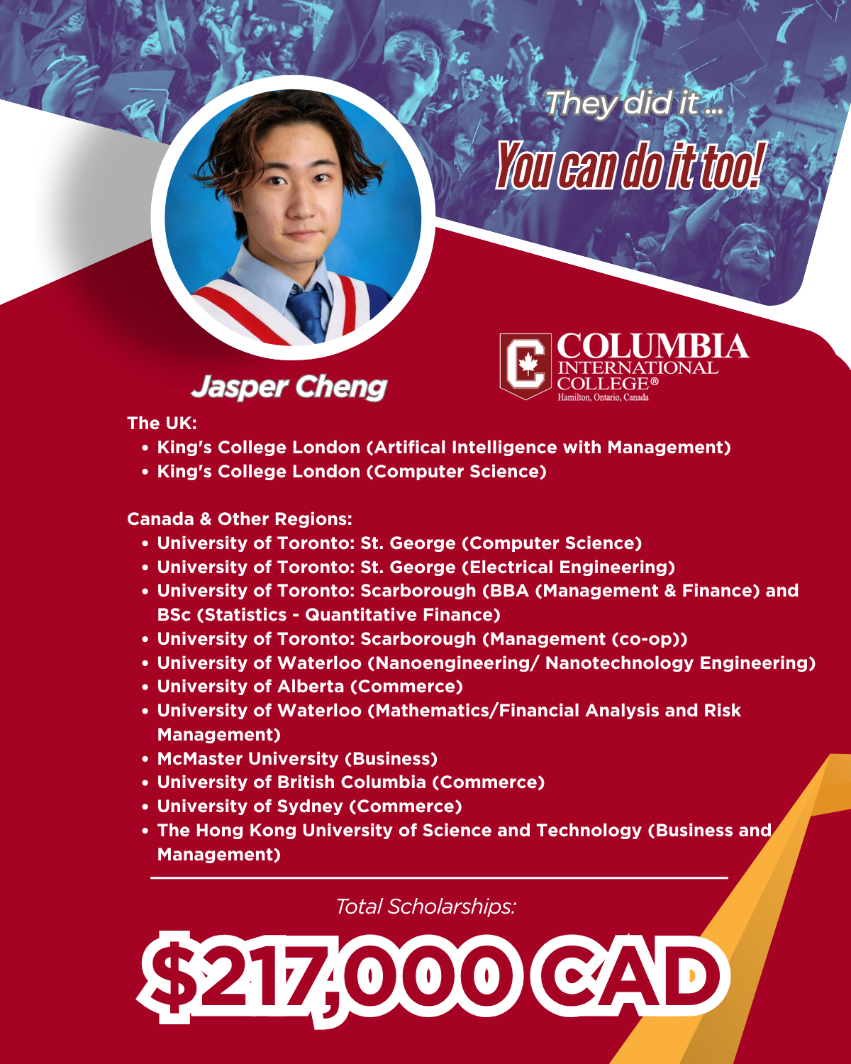 This milestone once again demonstrates the exceptional competitiveness of CIC students on the global higher education stage.