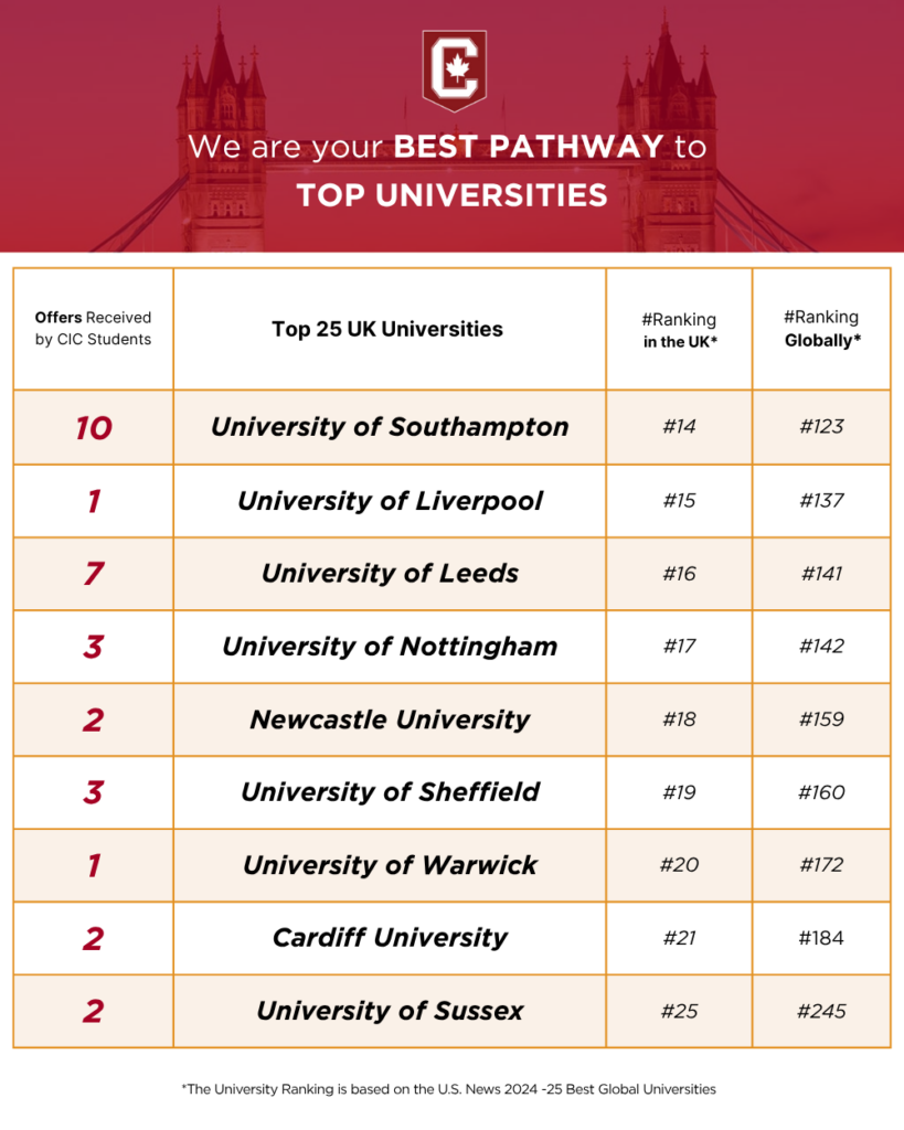 A Glimpse at CIC Students’ Offers from Leading UK Universities