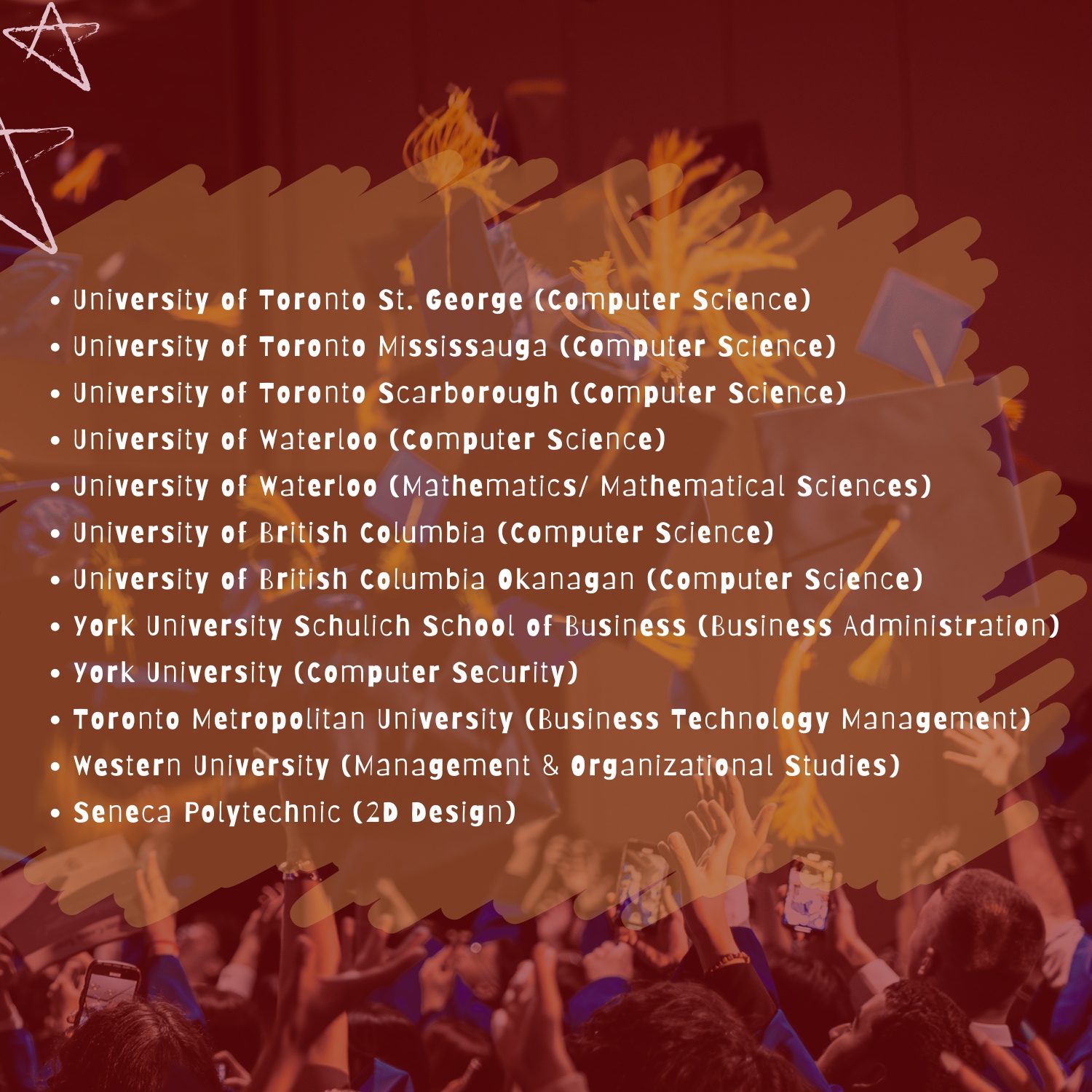 Nikita has achieved tremendous success in university applications and is now heading for the next brilliant chapter of his life. Congratulations, Nikita!- University of Toronto St. George (Computer Science)