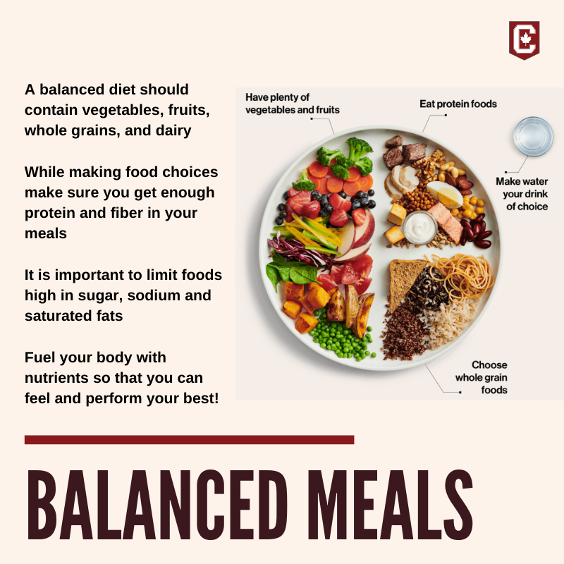 For more information about balanced meals, students can approach any of the Chartwells Chefs on campus or visit Shannon Simpson in the gymnasium in the Ainsliewood Building. Click the link here to access the Canada’s Food Guide.  To read more about CIC’s dining services you can click here: Dining Booklet