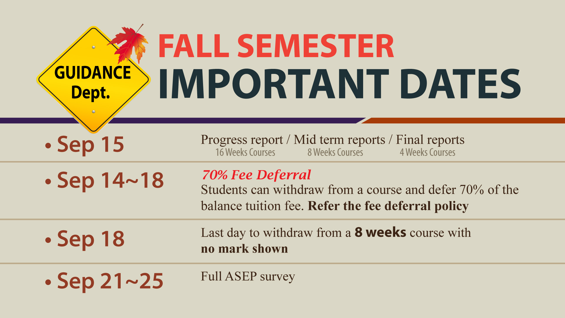 Guidance Dates - Fall