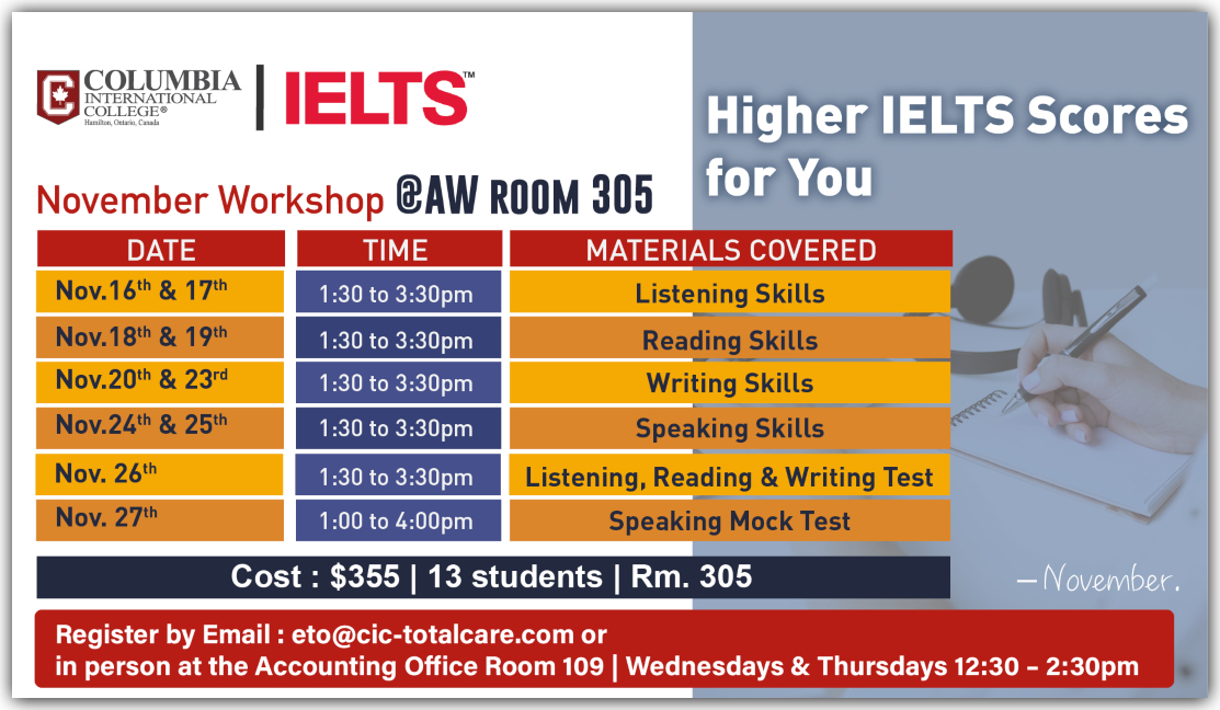 See November 2020 IELTS Workshop Schedule: