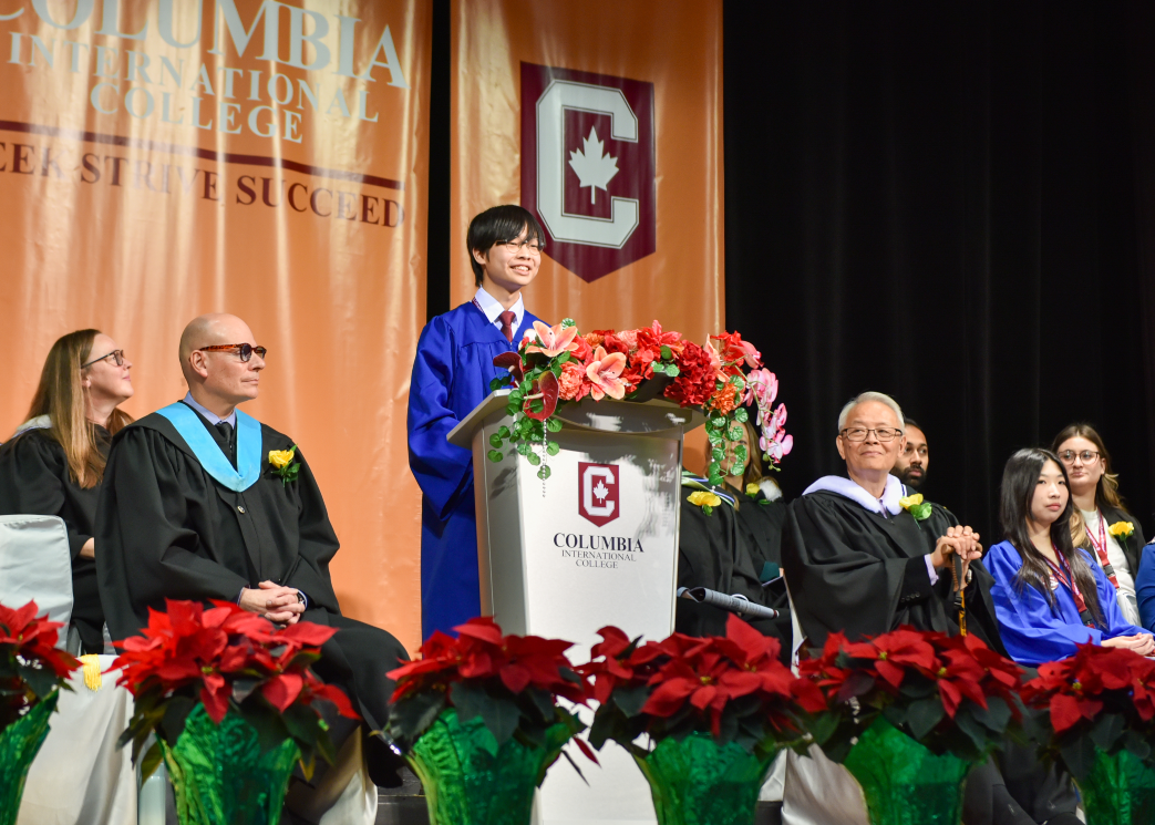 Columbia International College is proud to celebrate Oscar Kwok (Center), who was elected Vice-President of the Student Council and chosen as the Vote of Thanks speaker of December 2025 Graduation Ceremony, an honour that reflects his leadership, character, and commitment to service.