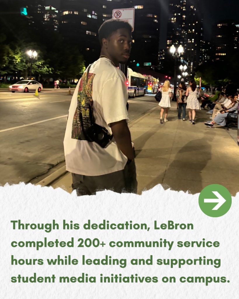 During his time at Columbia International College, LeBron completed over 200 community service hours, creating opportunities to explore storytelling, photography, and video while building a vibrant creative community on campus.