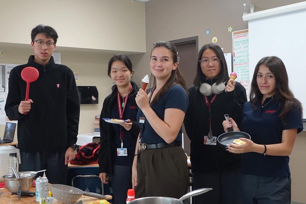 In Ms. Averyanova’s ESL class, students transformed into chefs and hosted their own cooking shows with kitchen and food props. From slicing and simmering to spatula and strainer, they explained every step using the verbs and nouns they‘ve learned in class.