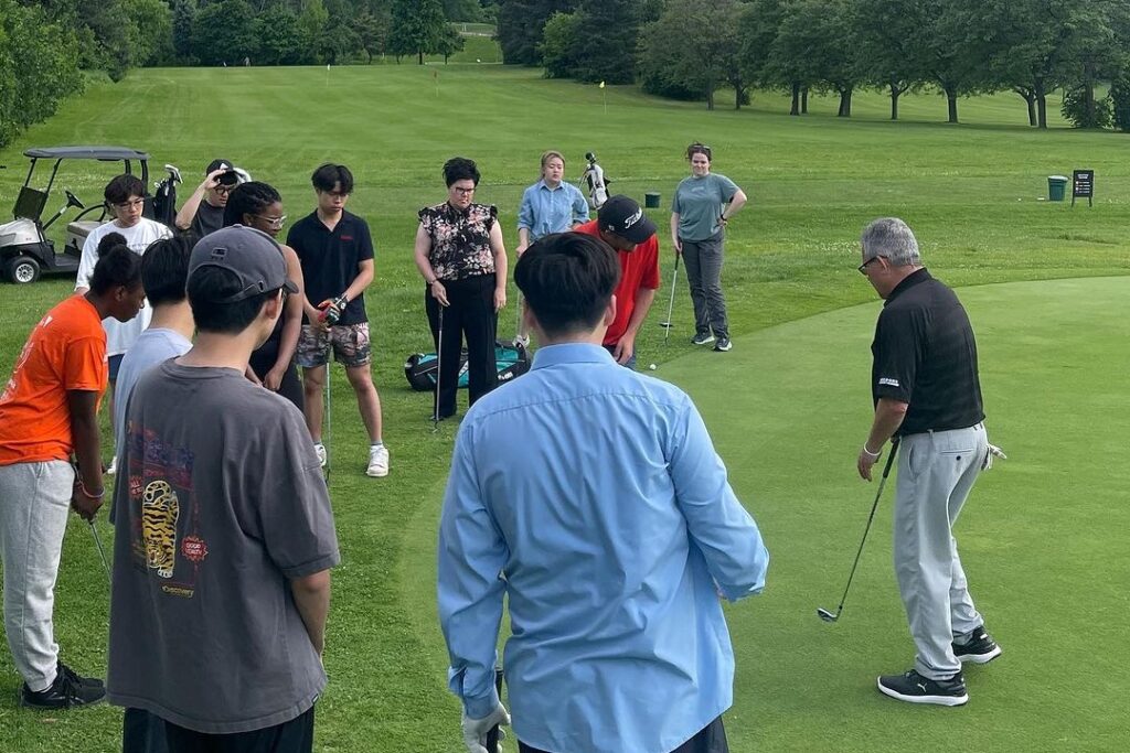Students have received guidance from professional trainers to improve their chipping and putting skills at Chedoke Golf Club. Principal Diana Reid also joined in for some fun on the greens.