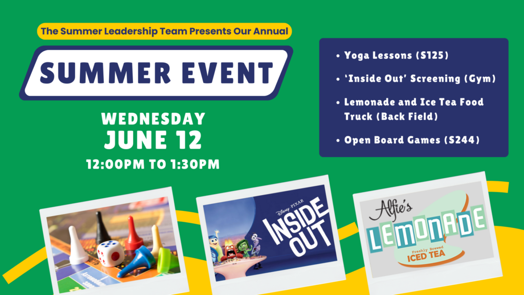 The Summer leadership team will be running their annual Summer Semester Event on Wednesday June 12th from 12:00PM-1:30PM.